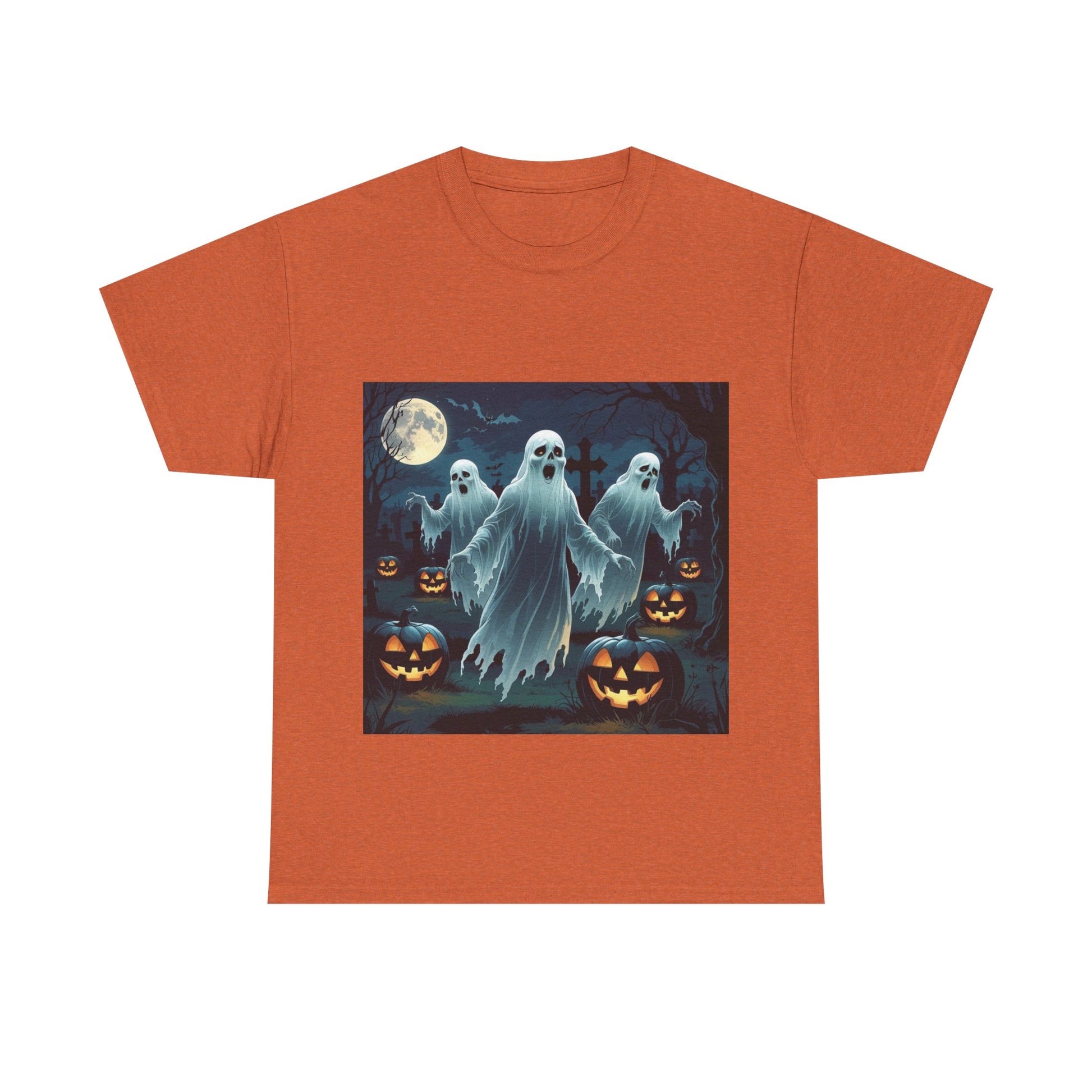 Celebrate the spooky season in style with this Unisex Heavy Cotton Tee, perfect for those who love Halloween! The shirt features a playful ghostly design set against a backdrop of glowing pumpkins, bringing a fun and autumn vibe to your wardrobe. Whether you're heading to a costume party, trick-or-treating with the kids, or just enjoying a cozy evening at home, this tee adds an extra touch of celebration. It's a fantastic choice for individuals who appreciate both comfort and style and can easily be dressed up or down for any occasion. Suitable for adults, this shirt is not just for Halloween; it’s perfect for casual outings, themed parties, or just a fun day at home. Pair it with jeans for a laid-back look or layer it under a cozy jacket for chilly autumn evenings. Embrace the spirit of the season with this delightful tee!